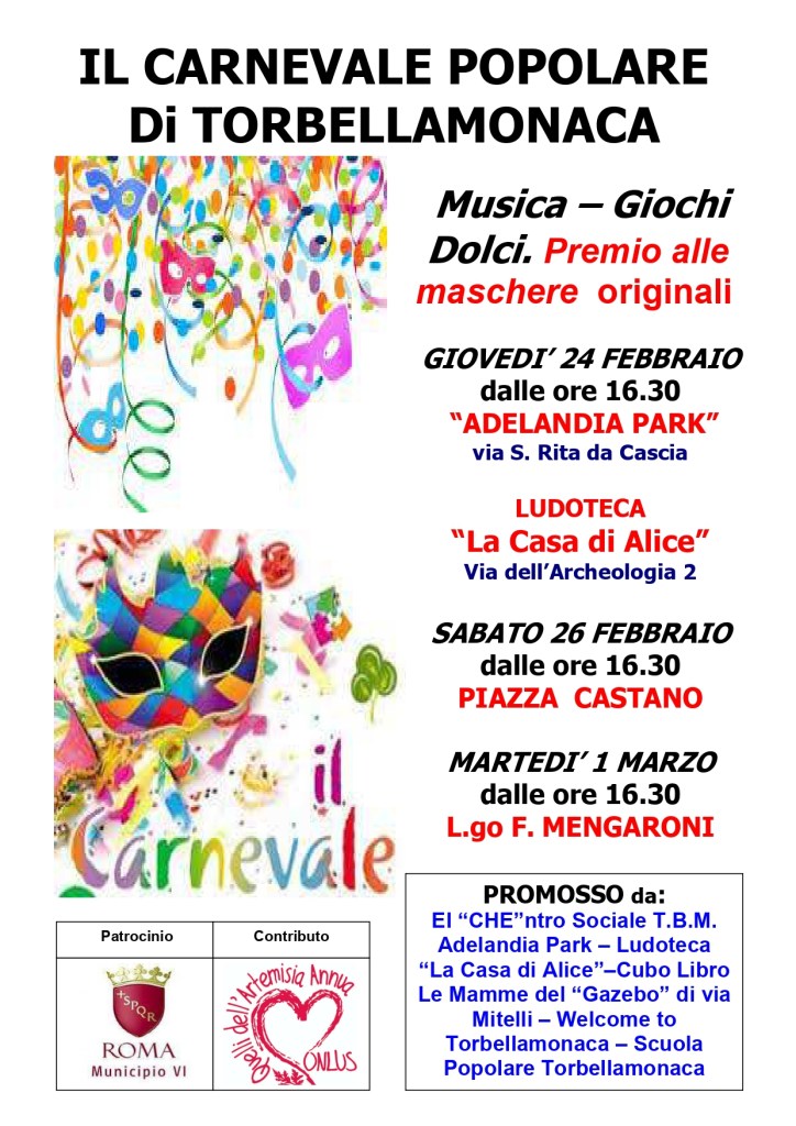 E allora, che rovesciamento dell’ordine costituito sia! Insieme a El Chentro Sociale, Adelandia Park, La Casa di Alice, Le mamme del gazebo di Via Mitelli, Welcome To Tor Bella Monaca e Scuola Popolare Tor Bella Monaca, abbiamo organizzato un carnevale popolare e dal basso con vari appuntamenti nel quartiere, lungo tutta la settimana che va dal 24 febbraio al primo marzo.
